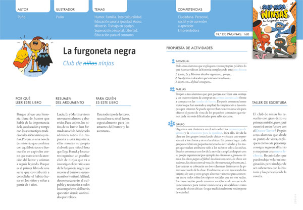 - ficha del docente: imprimible con datos técnicos, temas, competencias y valor interdisciplinar de cada libro, además de propuestas creativas para comprensión, diálogo y profundización y taller para la producción escrita guiada a partir de la lectura.